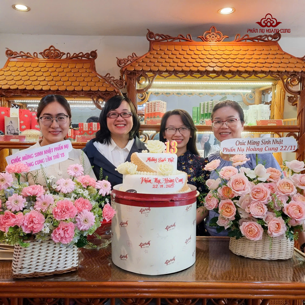 Trong suốt 13 năm hành trình, những bước tiến của Phấn Nụ Hoàng Cung luôn có dấu chân của đội ngũ nhân sự tận tâm đứng phía sau. Họ không chỉ là những đôi tay cần mẫn, tỉ mỉ từng chi tiết, mà còn là những trái tim cháy lửa với nghề, luôn dồn hết tâm huyết và tình yêu vào từng sản phẩm. Chính sự cống hiến âm thầm nhưng bền bỉ ấy đã tạo nên nền tảng vững chắc, biến giá trị di sản cung đình Huế thành niềm tự hào của hôm nay. Xin gửi lời cảm ơn sâu sắc đến tất cả các thành viên – những người đã đồng hành, giữ lửa và viết tiếp câu chuyện Phấn Nụ Hoàng Cung bằng chính tâm huyết của mình.