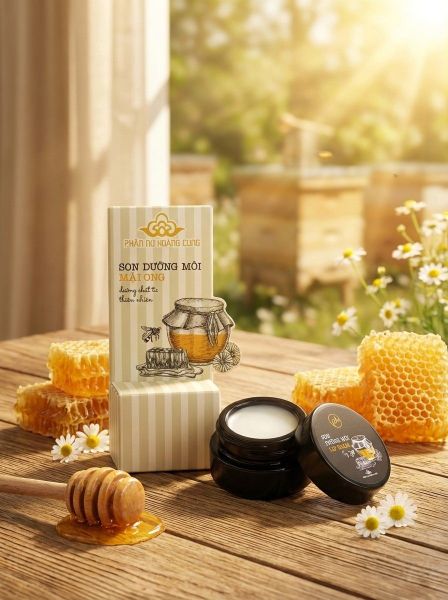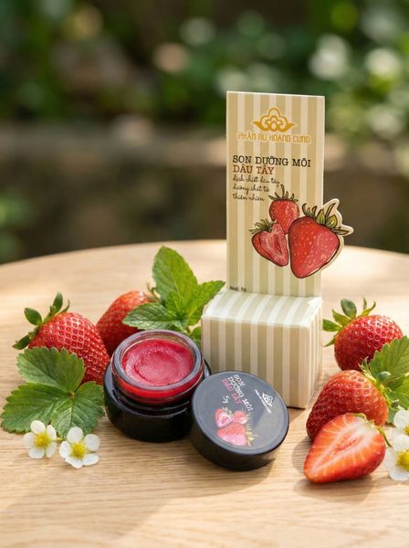 Trong lúc tìm giải pháp tối giản hơn, mình tình cờ đọc được về Son dưỡng môi Phấn Nụ Hoàng Cung, một thương hiệu mình chỉ biết đến qua vài lần nghe người lớn nhắc về phấn nụ truyền thống. Ban đầu mình cũng hơi lưỡng lự vì nghĩ sản phẩm truyền thống chắc không hợp nhu cầu hiện đại. Nhưng vì bảng thành phần sạch, nhìn khá “thuần Việt” và nhiều người phản hồi ổn, mình quyết định thử luôn cả hai loại: Dâu Tây và Mật Ong.