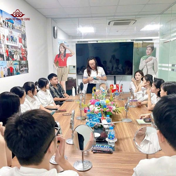 Sự hiện diện của Phấn Nụ Hoàng Cung tại lớp đào tạo tiếp viên hàng không không chỉ là một buổi hướng dẫn make-up, mà còn là minh chứng cho giá trị bền vững mà thương hiệu mỹ phẩm Việt mang lại: Đẹp từ tự nhiên, an toàn và trường tồn với thời gian.