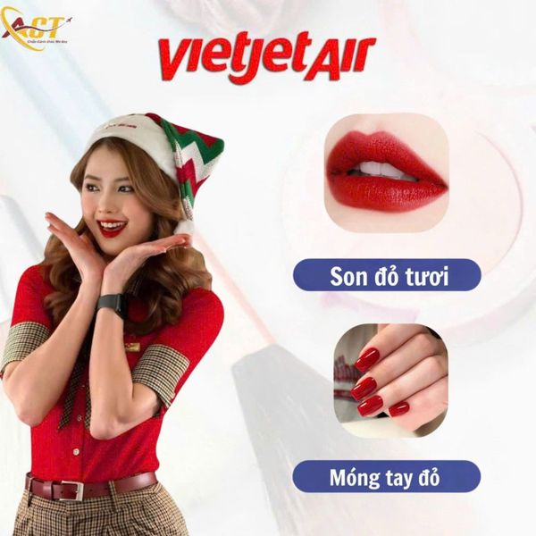 Màu son: Quy định sử dụng son đỏ tươi, phù hợp với sắc đỏ thương hiệu, giúp gương mặt tươi sáng và tạo điểm nhấn rạng rỡ.