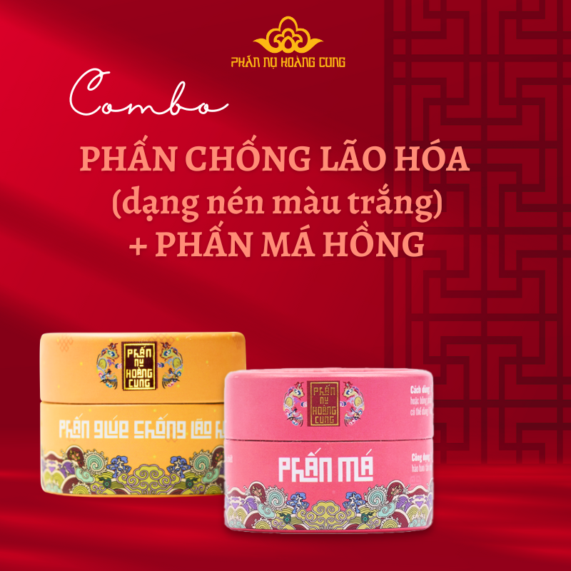 Combo Phấn Nụ Chống Lão Hóa + Phấn Má là bí quyết trang điểm mỏng mịn, tự nhiên từ Phấn Nụ Hoàng Cung - Thương hiệu mỹ phẩm thiên nhiên Việt Nam duy nhất sở hữu 2 chứng nhận cao quý: Thương hiệu nghề truyền thống và Báu vật gia truyền Việt Nam & Hàng Việt Nam chất lượng cao.